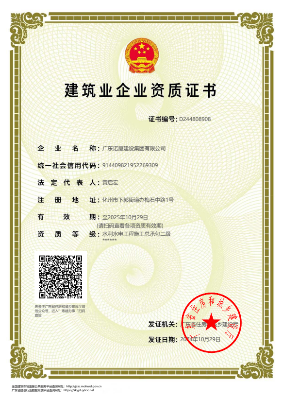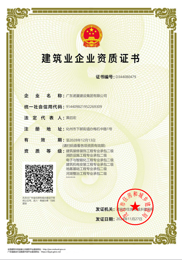 廣東諾廈建設集團有限公司是諾廈集團的核心企業(yè),具備國家房屋建筑工程施工總承包壹級、市政工程施工總承包壹級、港口與航道工程總承包、建筑裝修裝飾工程、消防設施工程、地基基礎工程、機電設備安裝工程、體育場地設施工程、建筑智能化工程、河湖整治工程、水利水電工程等資質。......